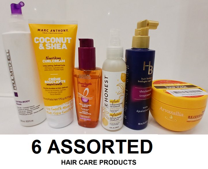 6 ASSORTED HAIR CARE PRODUCTS - VARIOUS BRANDS/TREATMENTS/SIZES