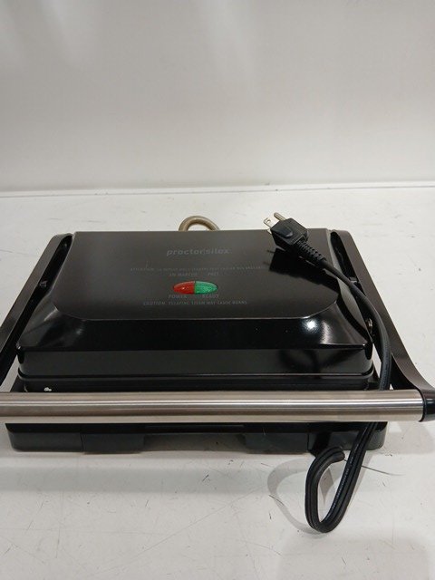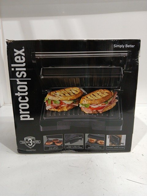 PROCTOR SILEX PANINI PRESS SANDWICH MAKER/GRILL with pull out drip tray - BLACK (MODEL: 25440PSC)