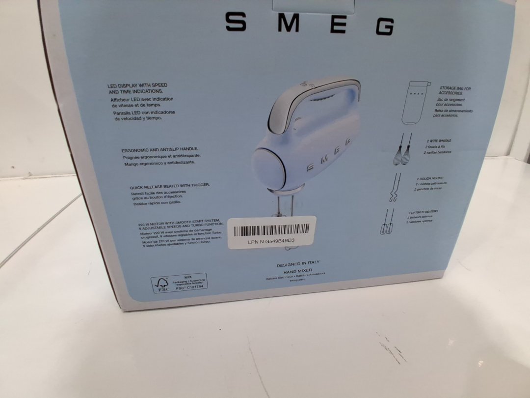 Smeg 50's Retro Style Electric Hand Mixer 9 Speed with accessories - White (model: HMF01WHUS SI 01)