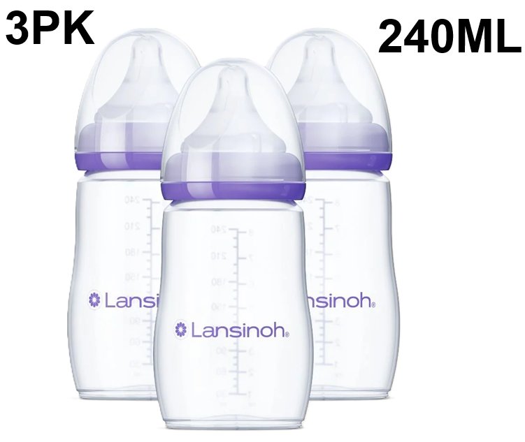 3PK Lansinoh Baby Bottles - 8OZ/240ML - Purple/Clear