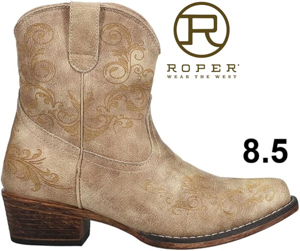 women's roper vintage short cowboy boots- size 8.5- light brown
