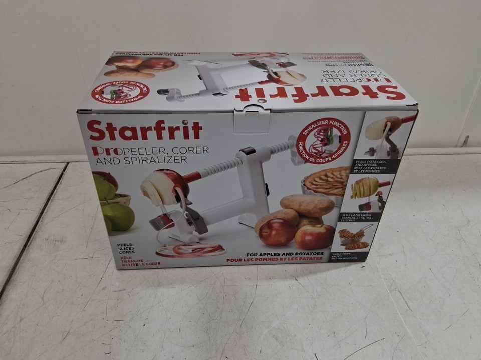 starfrit pro peeler, corer & spiralizer for potatoes and apples - white/red (model: 0921070030000)