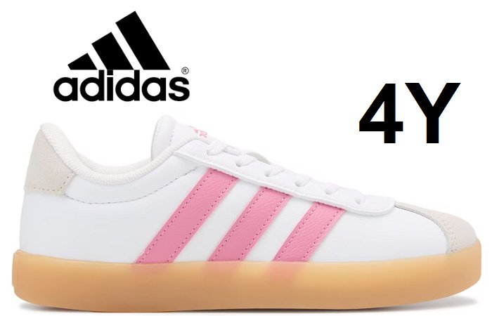 youth adidas vl court 3.0 sneaker - 4 - pink/white - (style:701247)
