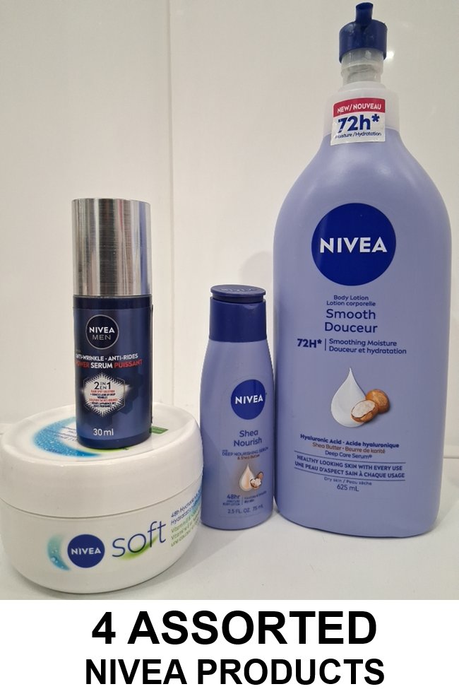 4 ASSORTED NIVEA PRODUCTS - ASSORTED SIZES AND TYPES