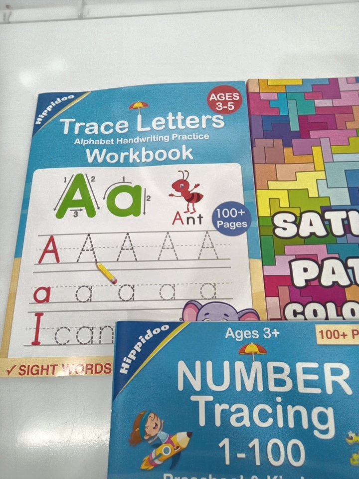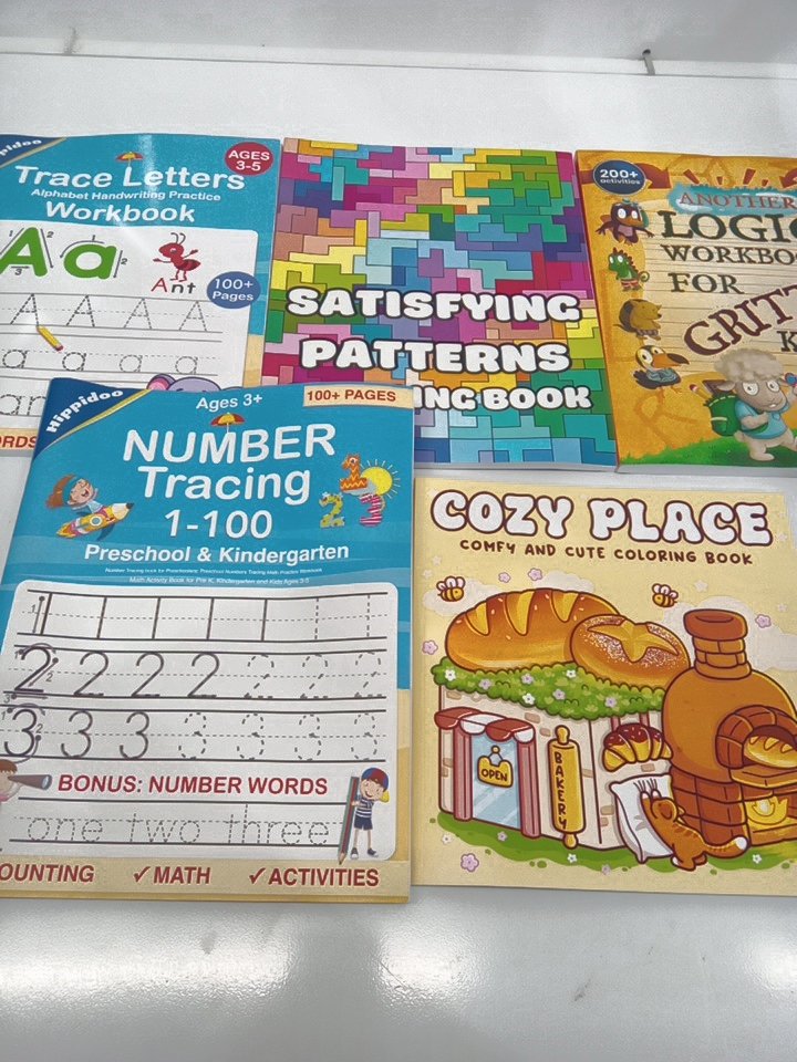 5 ASSORTED activity books - colouring books/number tracing / spelling