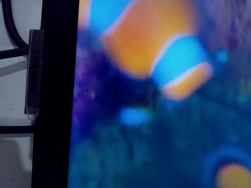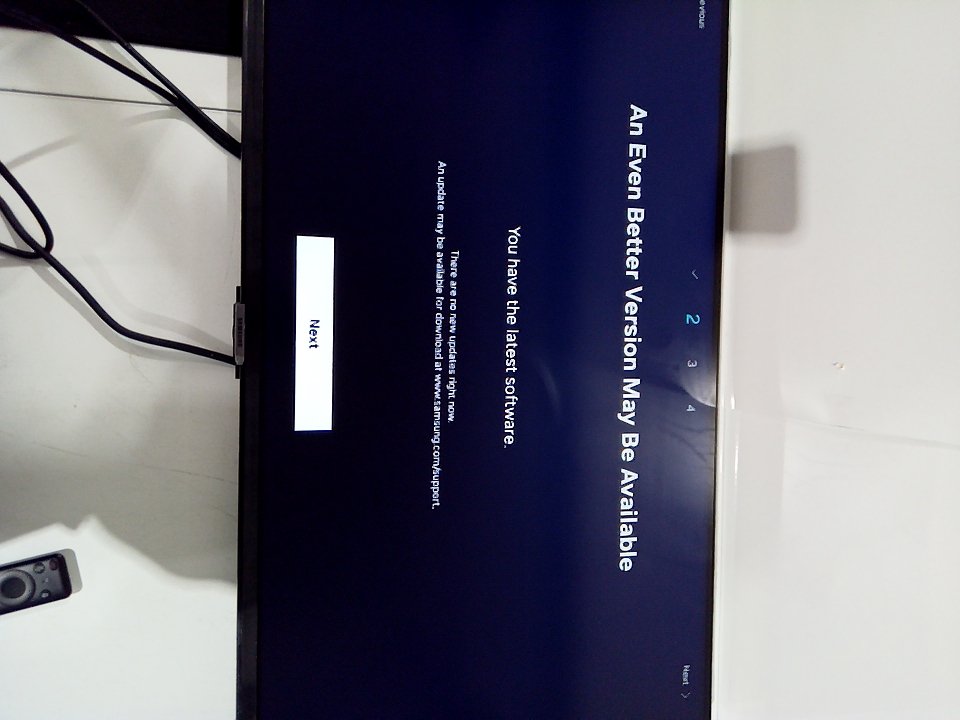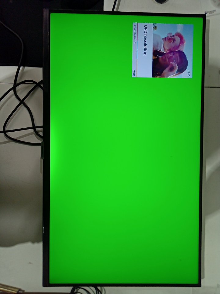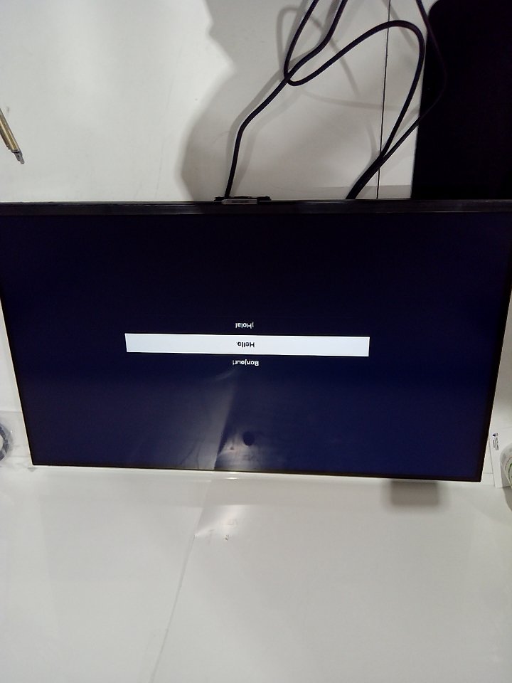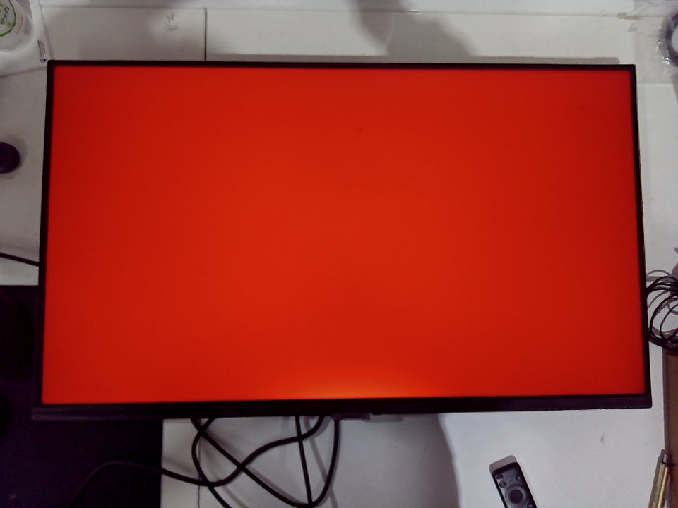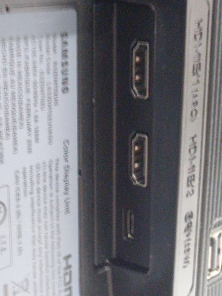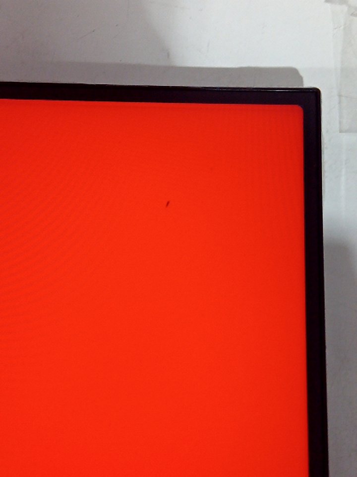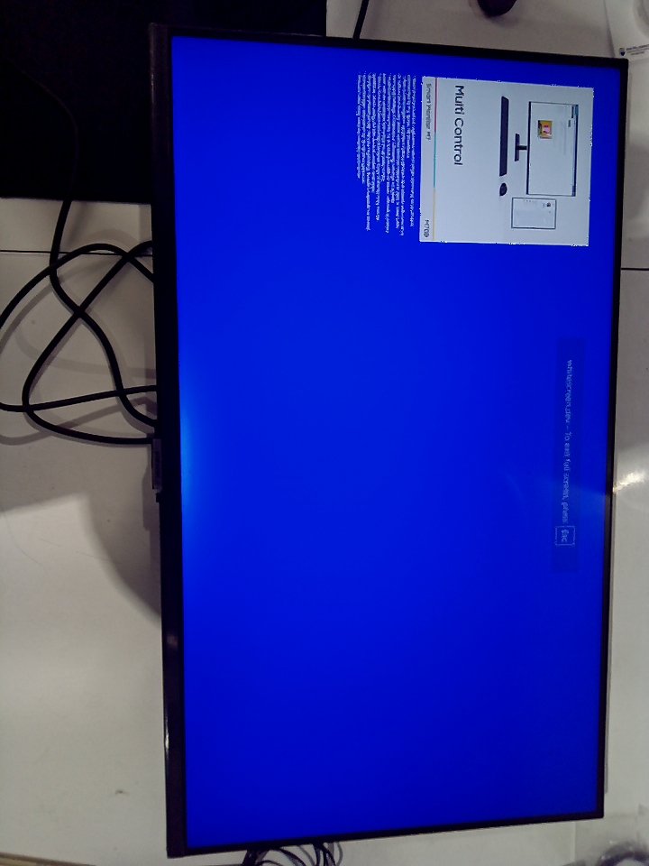There are a few small black markings/lines in the display, one at the top middle, one at bottom middle and one at the top right. Tested for power and display through HDMI connection. Tested remote control functionality and wi-fi connection. (SEE PHOTOS)