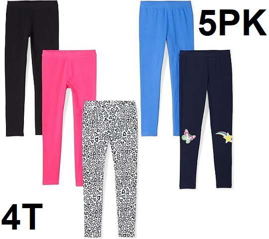 5PK girls amazon essential stretch leggings - 4T - assorted colors