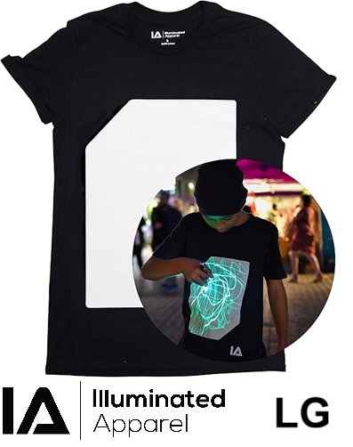 ILLUMINATED APPAREL Original Interactive Glow in The Dark T-Shirt WITH PEN - LARGE - BLACK