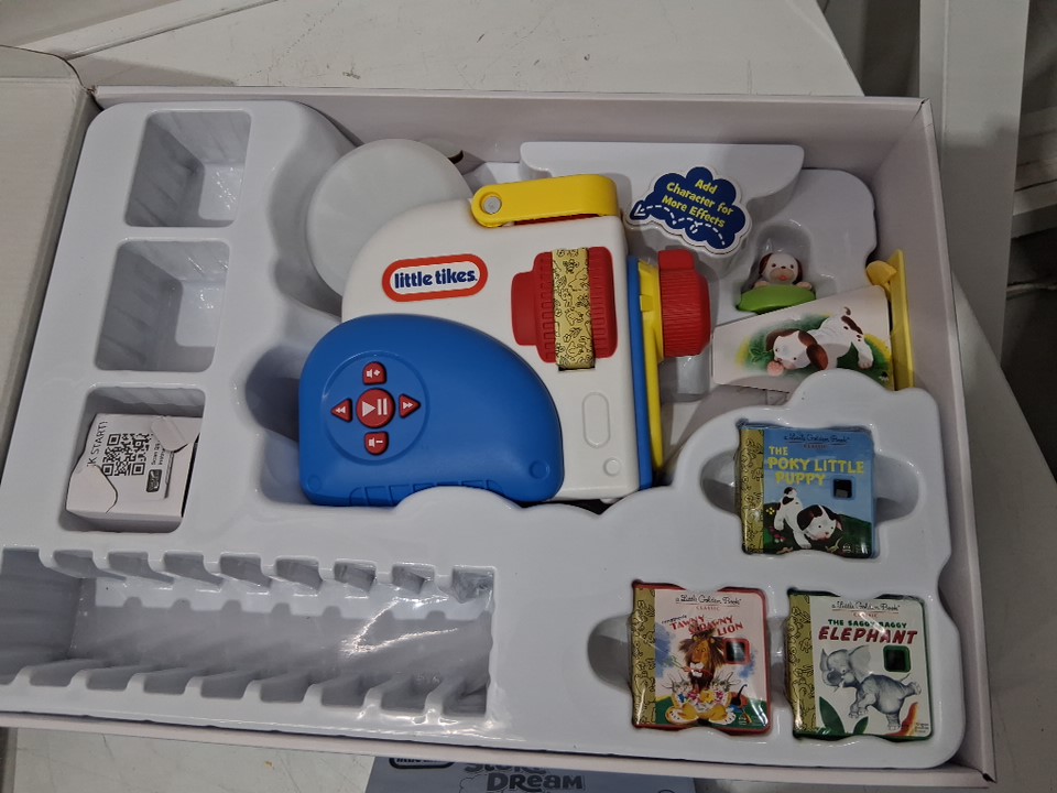 5pc Little Tikes kids Story Dream Machine Starter Set with 3 movies included and 3.5 mm headphone jack - 3+ (model: 663734X1)