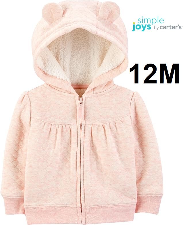 Girl's SIMPLE JPYS BY CARTERS Hooded Sweater Jacket with Ears and Sherpa Lining - 12 Months - Pink (style: ‎ B01G028)