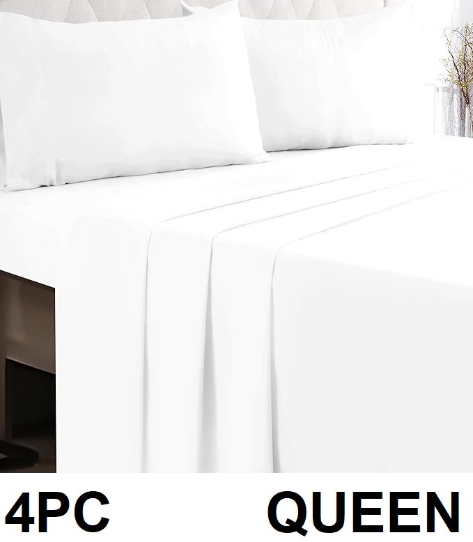 4pc glamburg home fashion sheet set - queen - white (model: 71021)