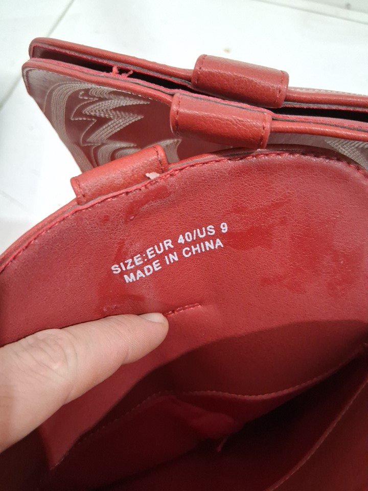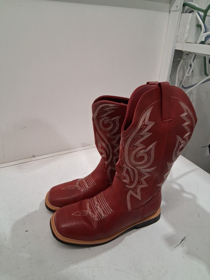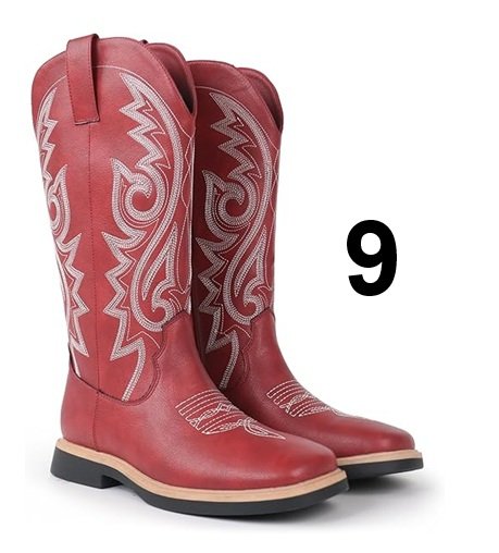 women's Hawkwell Faux Leather Slip-on Design Calf Length square toe Cowboy Boots with Embroidery Stitching - 9 - red