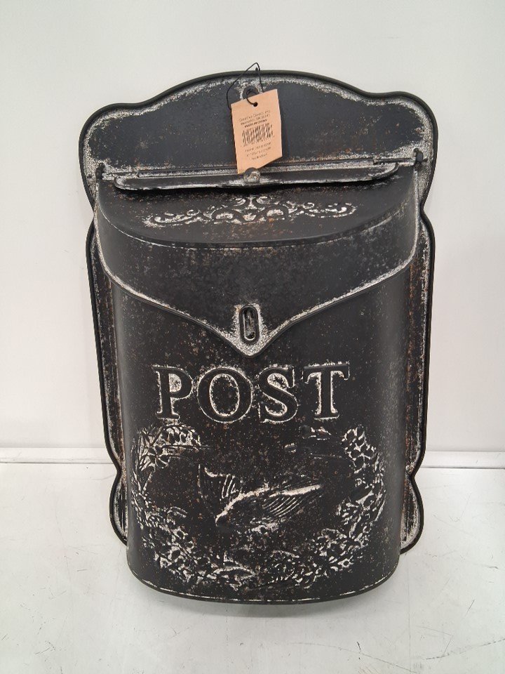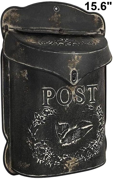 Zinc Post Box with Pigeon Vintage Country House Style - 15.6" - Black