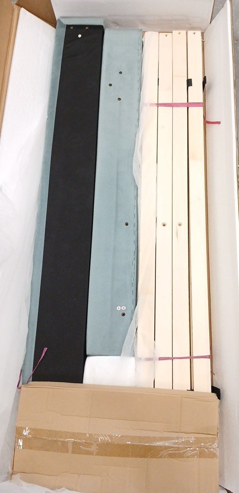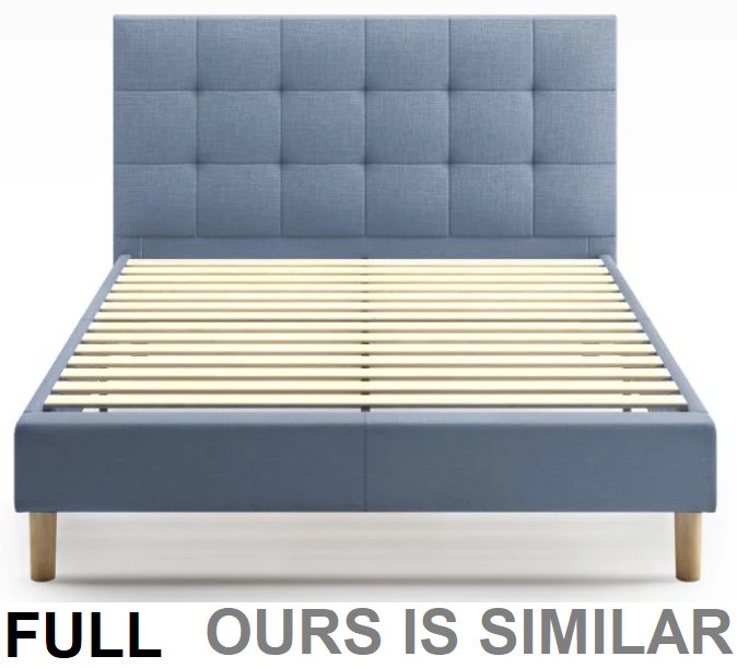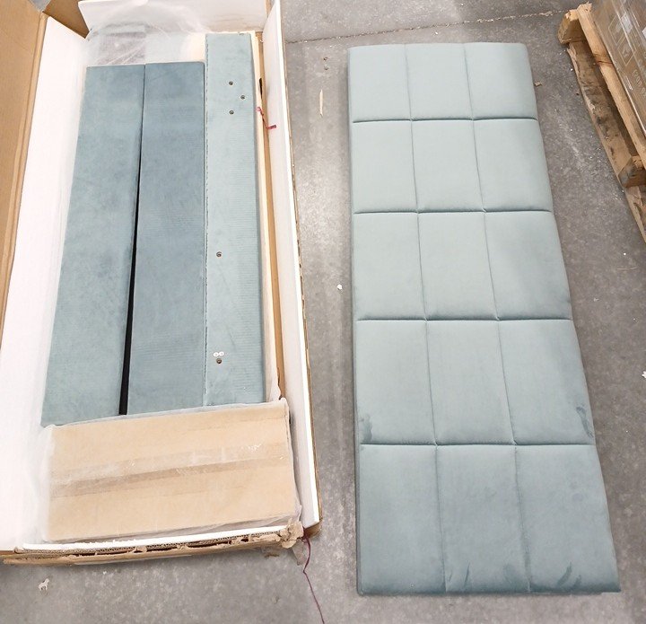 Our item is a different colour than the cover image. Our item is more of a green colour (see images). Our legs are black and over headboard has a 5x3 square pattern rather than a 6x3 square pattern like the cover image.