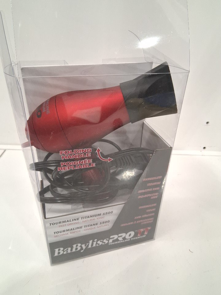 BABYLISS PRO TT TOURMALINE TITANIUM MICRO TRAVEL HAIR DRYER WITH FOLDING HANDLE - 1500W - RED (MODEL: BABTT053TC)