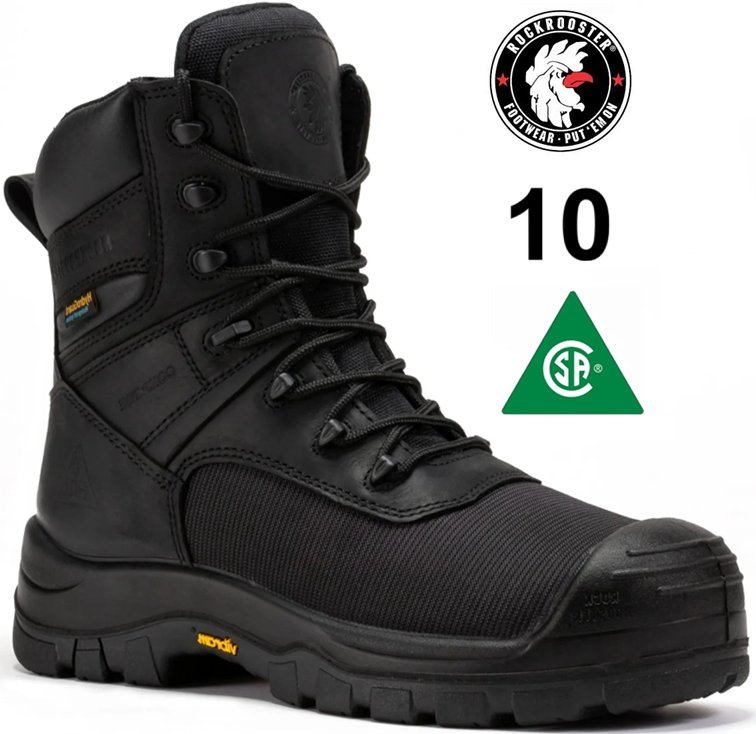 men's ROCKROOSTER Beaufort 8" Waterproof Composite Toe Work Boots - 10 - black (style:VAK830)