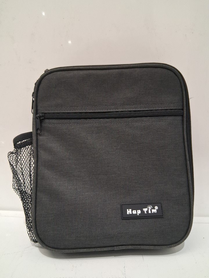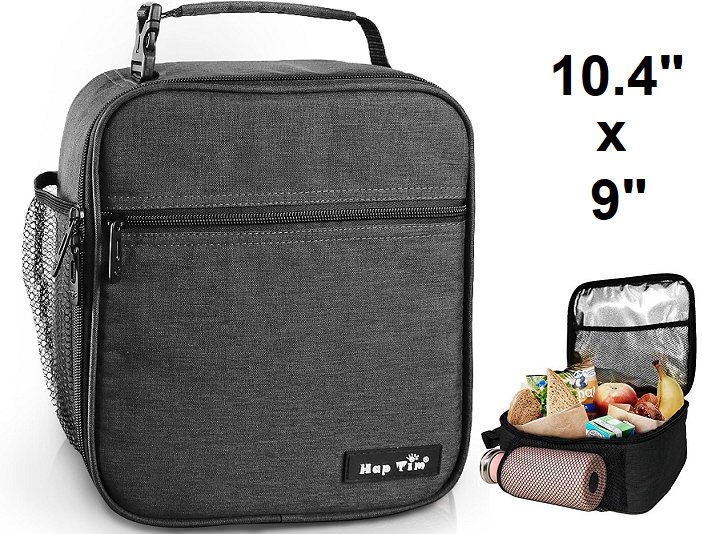 hap tim insulated lunch bag with front zip pocket and water bottle holder - 10.4" x 9" - grey/black