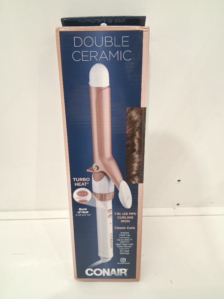 CONAIR DOUBLE CERAMIC CURLING IRON - 1" - WHITE/ROSE GOLD (MODEL: CD701GNC)