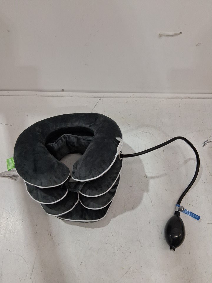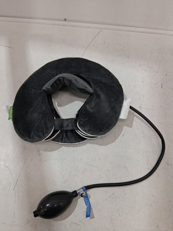auvon cervical neck traction inflatable device with 3-layer in vary sizes - black/white