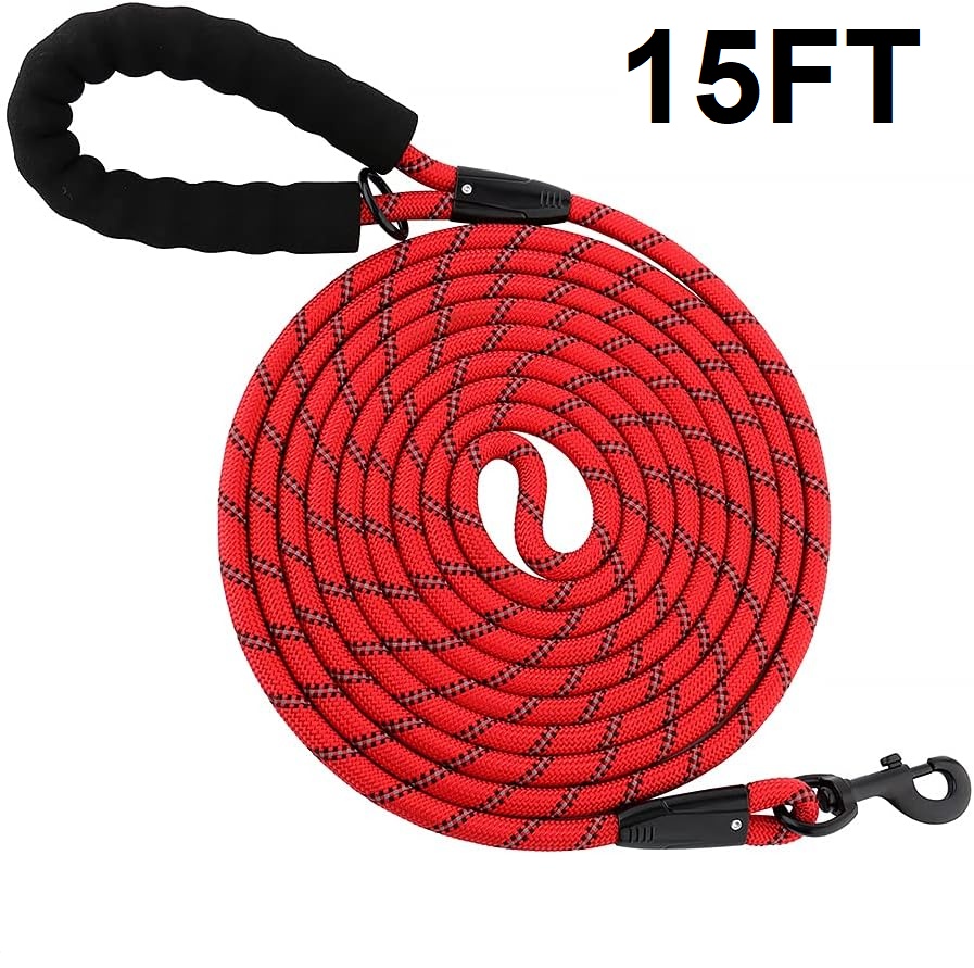 Plutus Pet REFLECTIVE Dog Leash WITH Comfortable Padded Handle - 15FT - RED