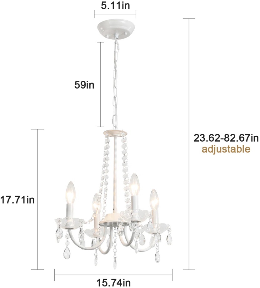 house of hampton Adjustable 4-light classic candle-style chandelier with crystal detailing - 15.7" x 15.7" x 23.6" to 82.7" - White (Model: C100061740/W100061230)