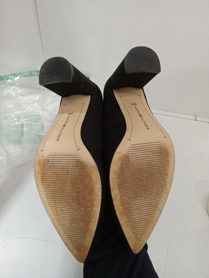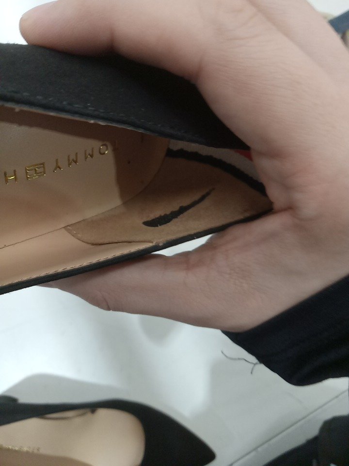 Has some foam on the back of the heel where pads have been stuck previously. Some dirt on the treads.