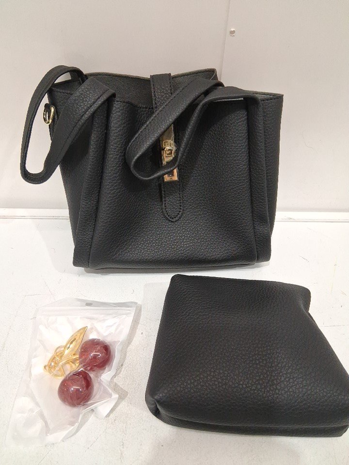 women's Trendy Bucket Crossbody Bag with insert and cherry pendant - 5l capacity - black