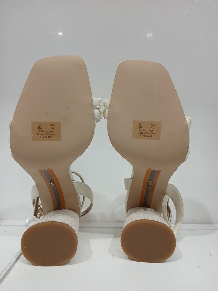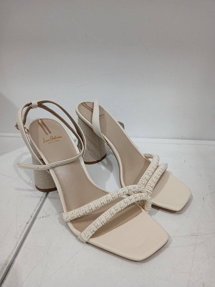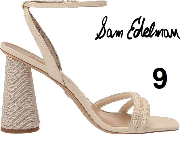 WOMEN'S SAM EDELMAN KIA ANKLE STRAP HIGH HEELED SANDAL - 9- beige/beads