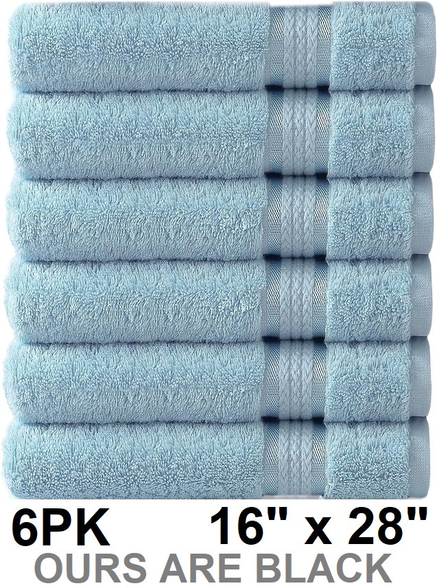 6pk Cotton Craft Ultra Soft Hand Towels - 16" x 28" - black