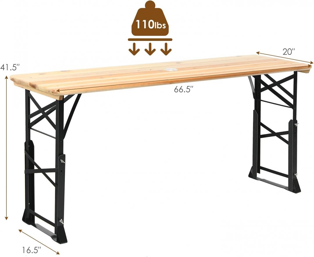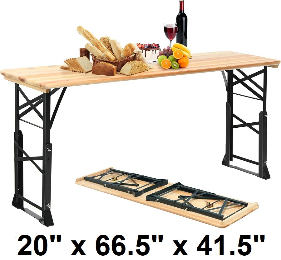 Goplus Folding Picnic Beer Table - 20" x 66.5" x 41.5" - 110LBS CAP - Brown (Model: NP10827DK)