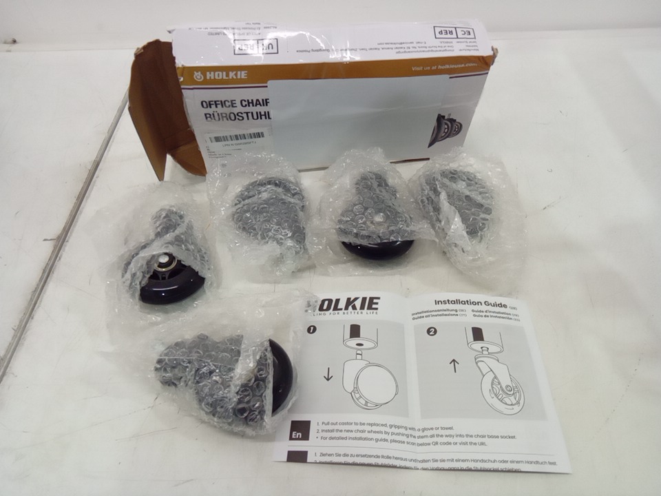 5pk holkie office chair caster roller blade style wheels - 11mm x 22mm - 3"- black
