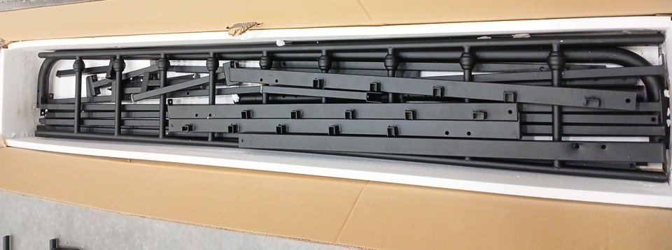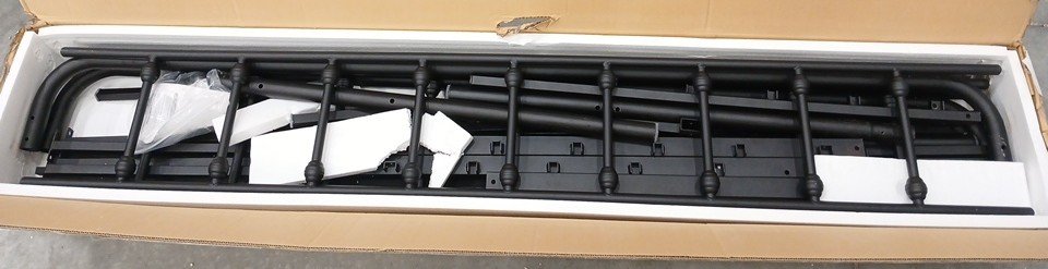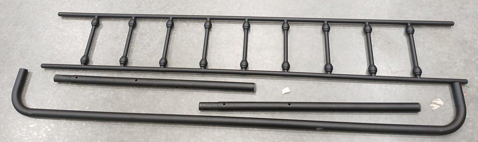 This item has a lot of scratches on its metal pieces, previous assembly marks, and one of the pieces has an orange discolouring. Additional hardware may be required