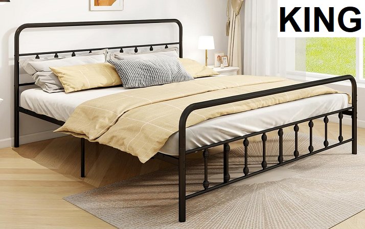 costway metal bed frame with headboard and footboard - King - black - (model: HU10840DK-K)