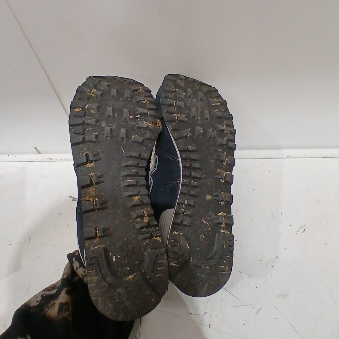 some marks on the sides of the shoes some dirt and grass in the soles