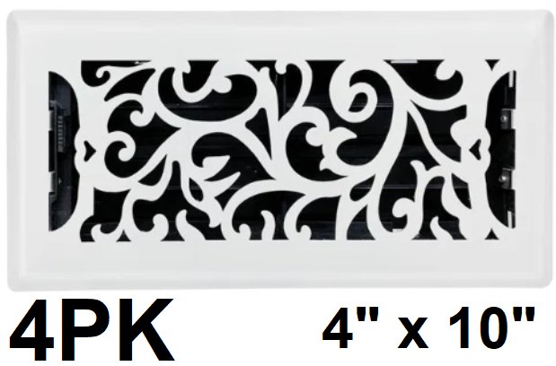 4PK SIERRA GRATES FLORAL VENT COVERS - GLACIER WHITE - 4" X 10"