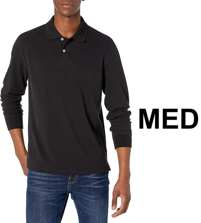 Men's Amazon Essentials Regular-Fit Long-sleeve Pique Polo - Medium - black
