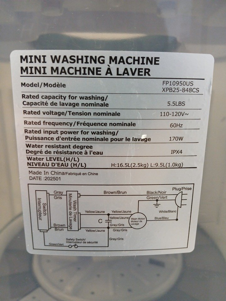 GIANtex Portable Mini Semi-automatic Washing Machine 2.5 kg capacity - white - (MODEL: FP10950US-GR)