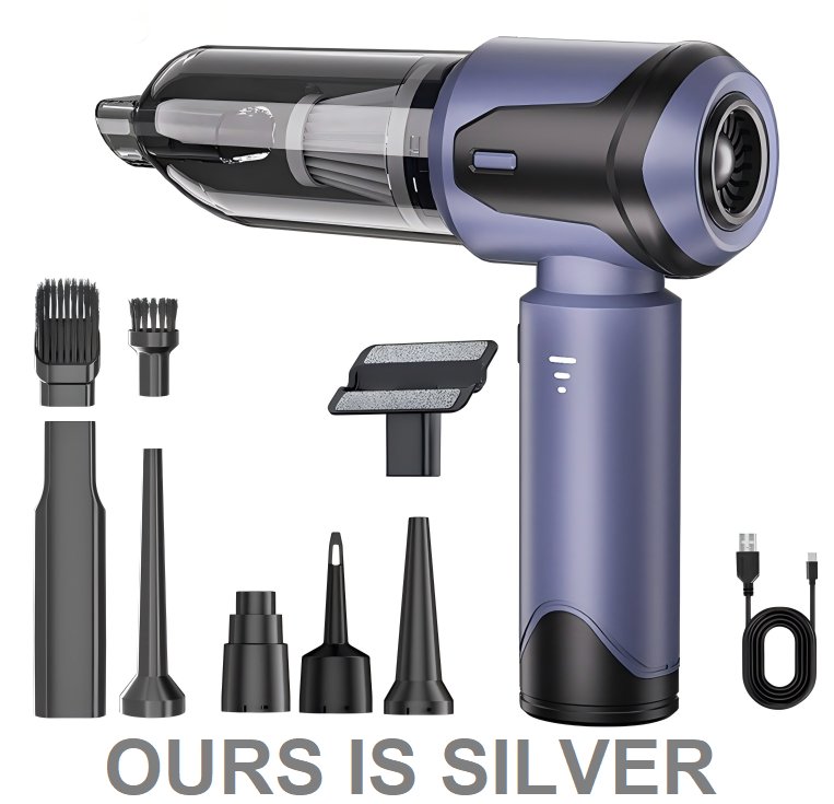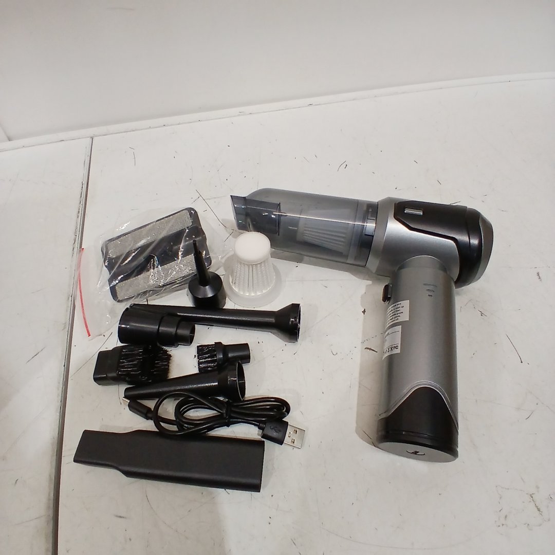PORTABLE RECHARGEABLE HANDHELD VEHICLE VACUUM CLEANER WITH ATTACHMENTS - 100W - SILVER (MODEL: ST-6684PLUS)