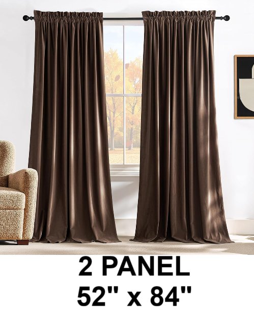 (2 panel) NICETOWN Thermal Insulated Velvet Curtains - 52" x 84" - brown