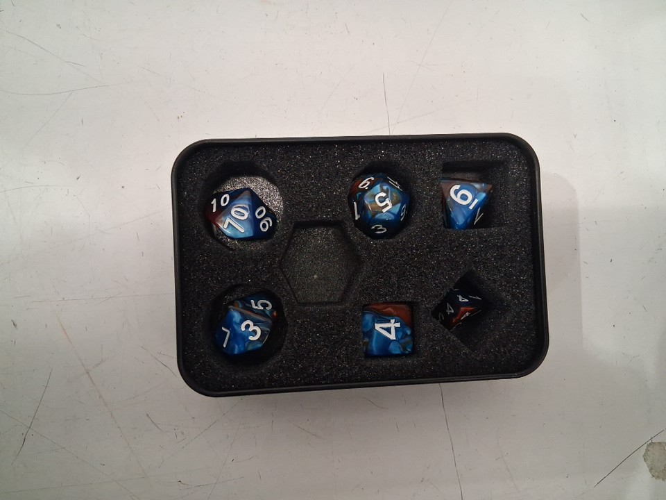 20 sided die is missing and dice are repackaged in another dnd dice brand box