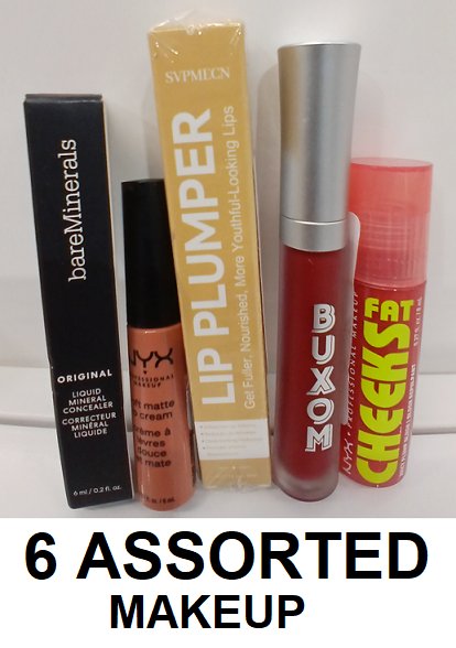 6 ASSORTED MAKEUP PRODUCTS- ASSORTED COLORS, TYPES AND BRANDS - CONCEALER/lipsticks/ blush