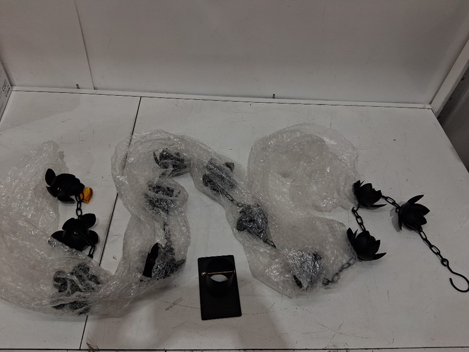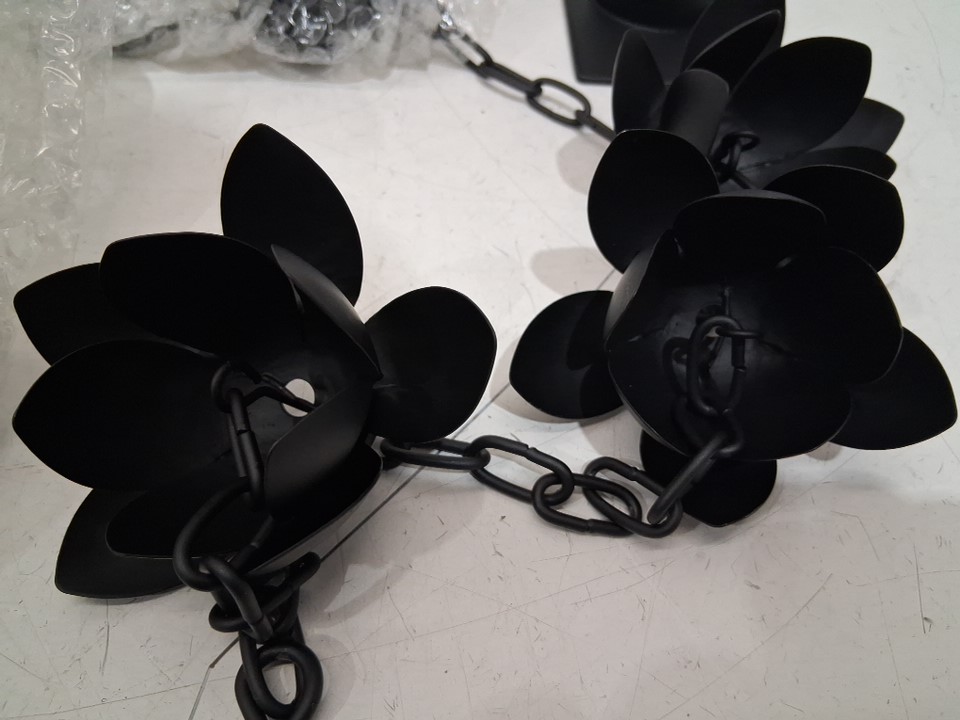 Metal Rain Chain with Petal Shape Chimes and Cups - 12 Cups - black
