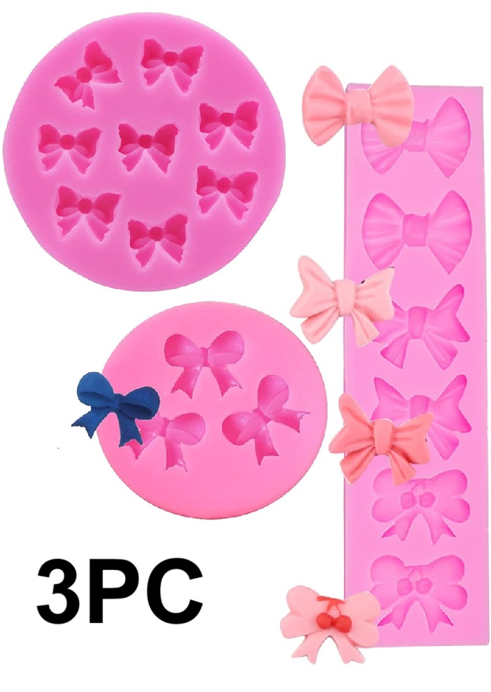 3PC YuZhou Fondant Bow Mold, Silicone Chocolate Candy Mold - SAFE FOR -40 ℃ to +230 ℃ - PINK