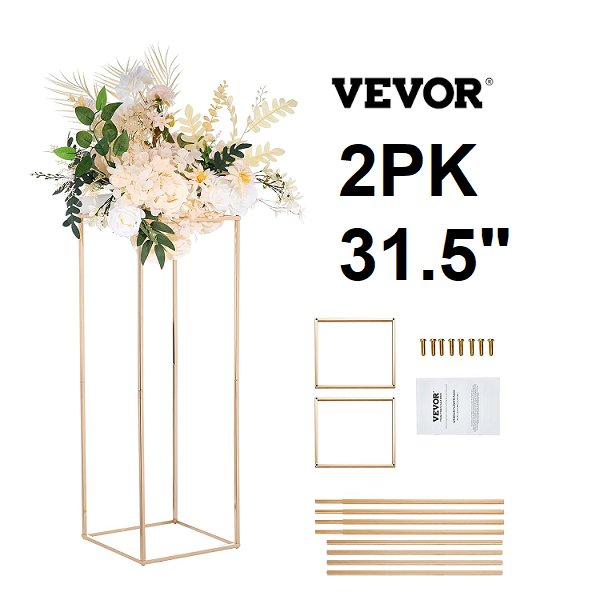 2PK VEVOR METAL RECTANGULAR HIGH FLOWER STAND - 31.5" - GOLD (MODEL: LJLHLHJ8001)