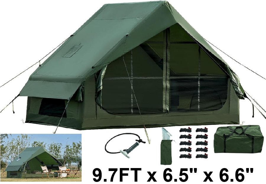 WaldZimmer Inflatable Camping Tent with Hand Pump - 9.74FT x 6.46FT x 6.56FT - 3-4 Person- green