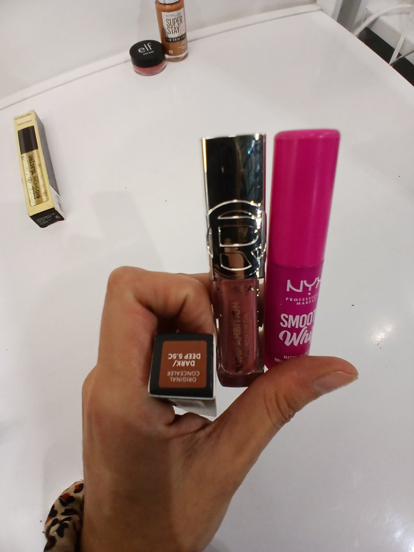 6 ASSORTED MAKEUP PRODUCTS- ASSORTED COLORS, TYPES AND BRANDS - CONCEALER/lipsticks/ skin tint /mascara/ blush
