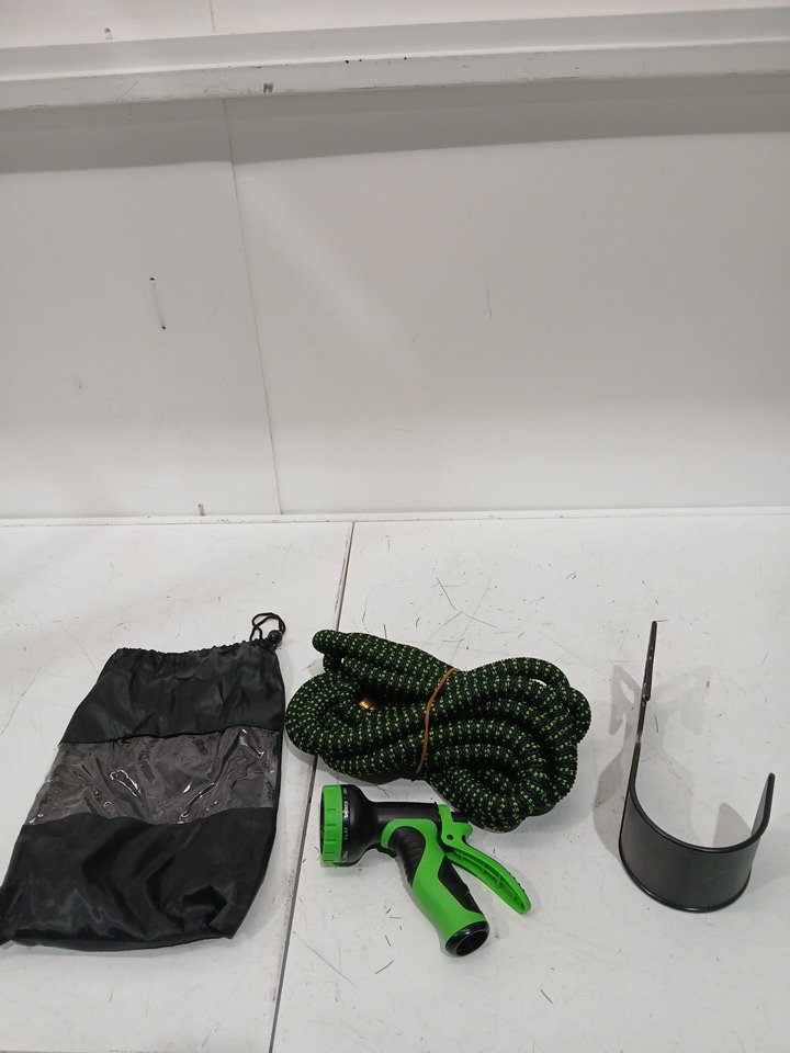 UNBRANDED FLEXIBLE EXPANDABLE GARDEN HOSE WITH MULTIFUNCTION SPRAY NOZZLE - 50FT - BLACK/GREEN