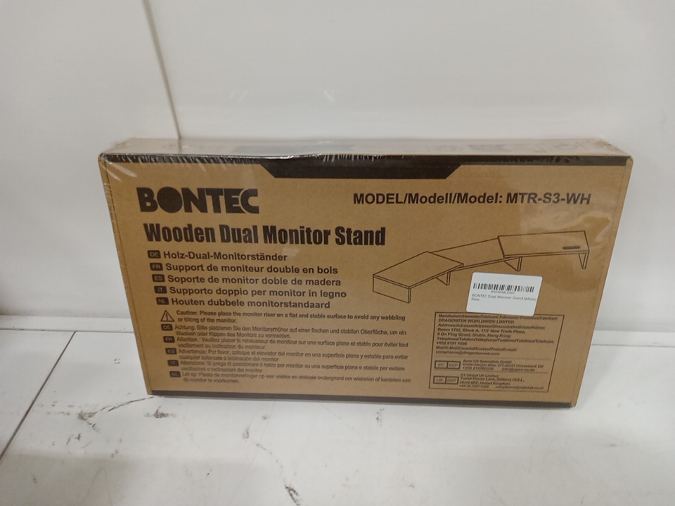 BONTEC Dual Monitor Stand Riser with Smartphone Holder - 16.9" x 10" x 2.5" - white (model:MTR-S3-WH)