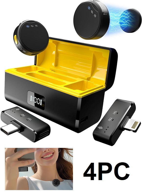 4PC Rythflow Lavalier Microphone with 2 Magnetic Microphones, USB-C Receiver, and Lightning Receiver - Black (Model: RY-LM02)