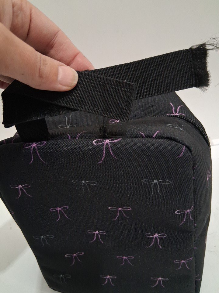 strap on top has ripped out. if you can sew it's a relatively easy fix, or remove it completely, see photos.